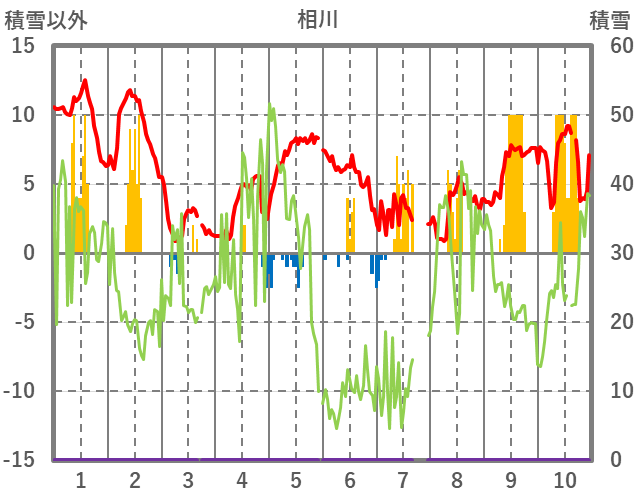 | 日 | 時 | 気温 | 降水 | 風向/風速 | 日照 | 積雪 | 降雪 |