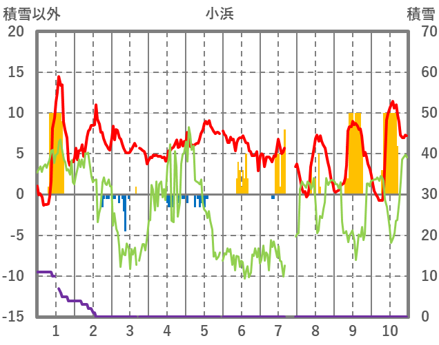 | 日 | 時 | 気温 | 降水 | 風向/風速 | 日照 | 積雪 | 降雪 |