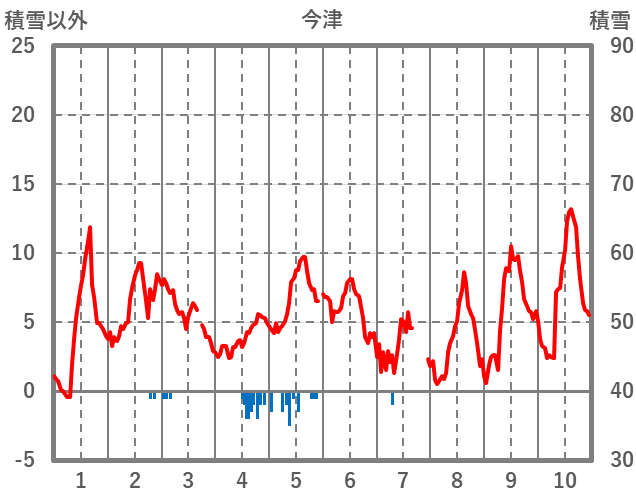| 日 | 時 | 気温 | 降水 | 風向/風速 | 日照 | 積雪 | 降雪 |