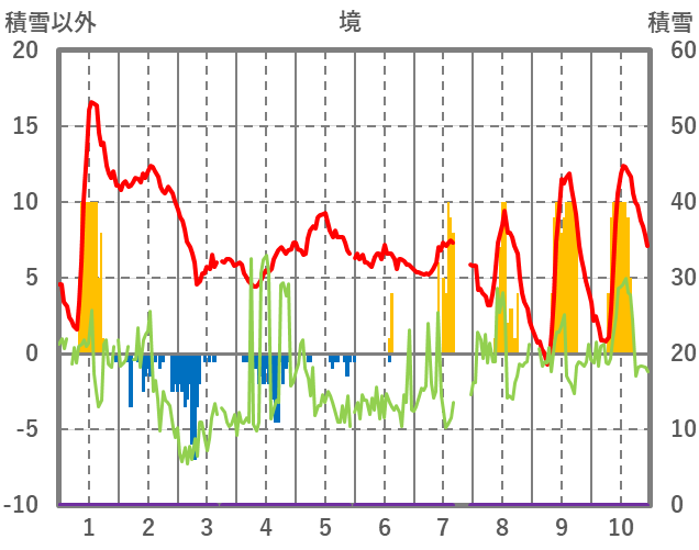 | 日 | 時 | 気温 | 降水 | 風向/風速 | 日照 | 積雪 | 降雪 |