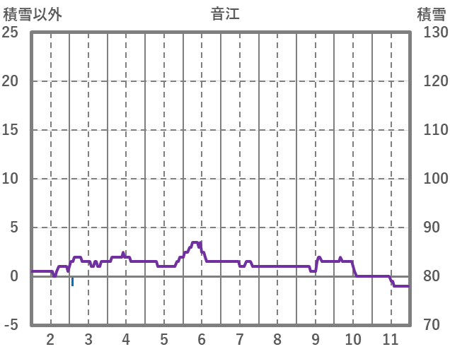 | 日 | 時 | 気温 | 降水 | 風向/風速 | 日照 | 積雪 | 降雪 |