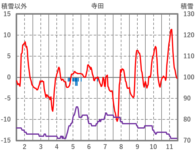 | 日 | 時 | 気温 | 降水 | 風向/風速 | 日照 | 積雪 | 降雪 |