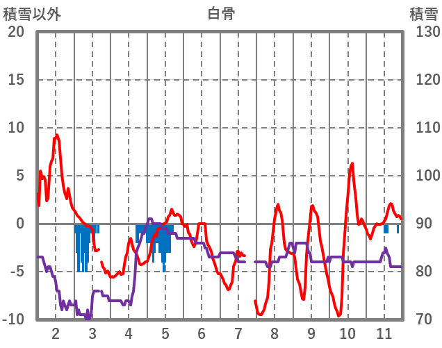 | 日 | 時 | 気温 | 降水 | 風向/風速 | 日照 | 積雪 | 降雪 |