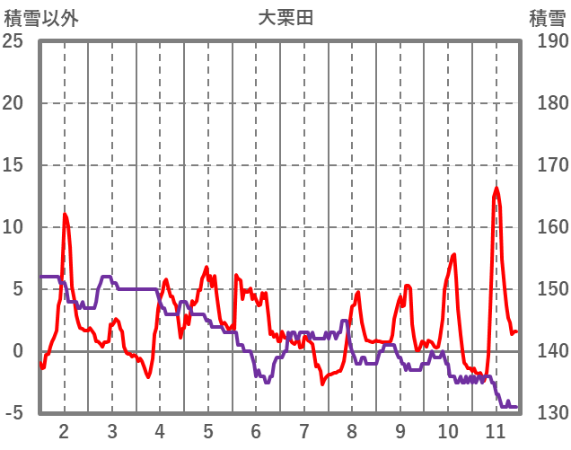 | 日 | 時 | 気温 | 降水 | 風向/風速 | 日照 | 積雪 | 降雪 |