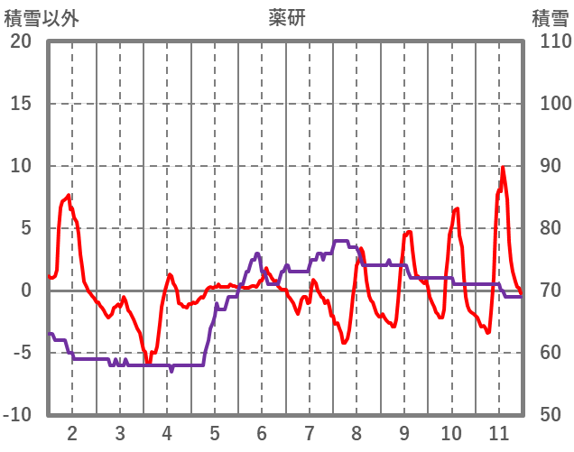 | 日 | 時 | 気温 | 降水 | 風向/風速 | 日照 | 積雪 | 降雪 |