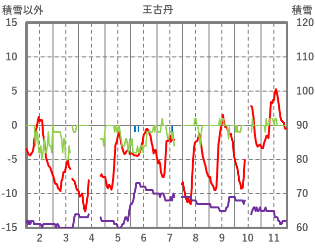 | 日 | 時 | 気温 | 降水 | 風向/風速 | 日照 | 積雪 | 降雪 |