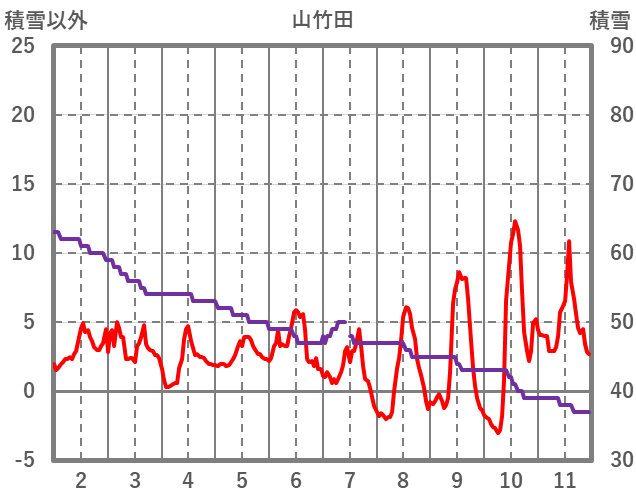 | 日 | 時 | 気温 | 降水 | 風向/風速 | 日照 | 積雪 | 降雪 |