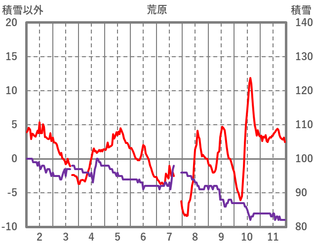 | 日 | 時 | 気温 | 降水 | 風向/風速 | 日照 | 積雪 | 降雪 |