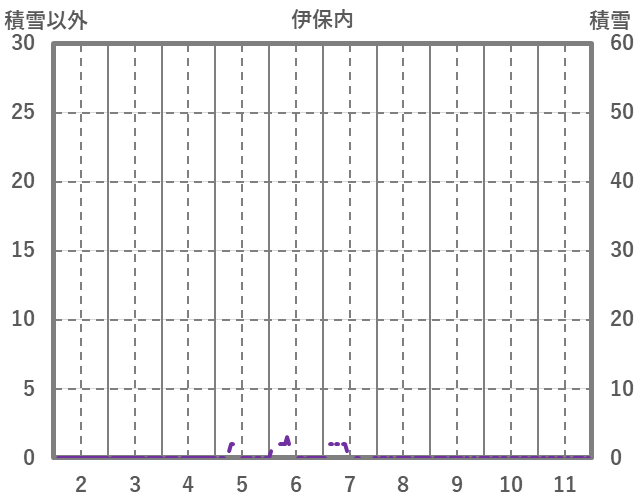 | 日 | 時 | 気温 | 降水 | 風向/風速 | 日照 | 積雪 | 降雪 |