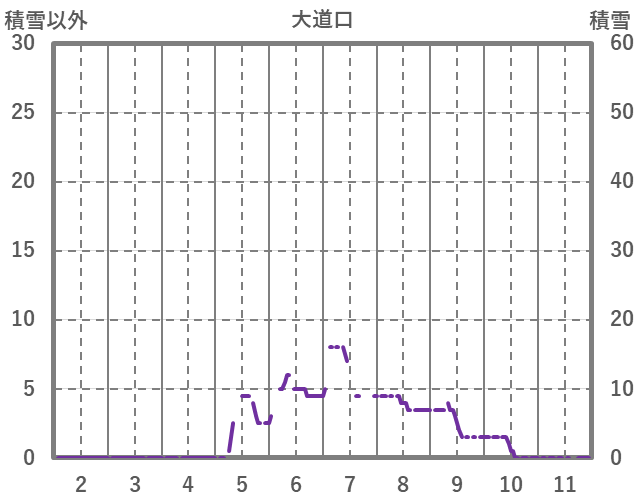| 日 | 時 | 気温 | 降水 | 風向/風速 | 日照 | 積雪 | 降雪 |