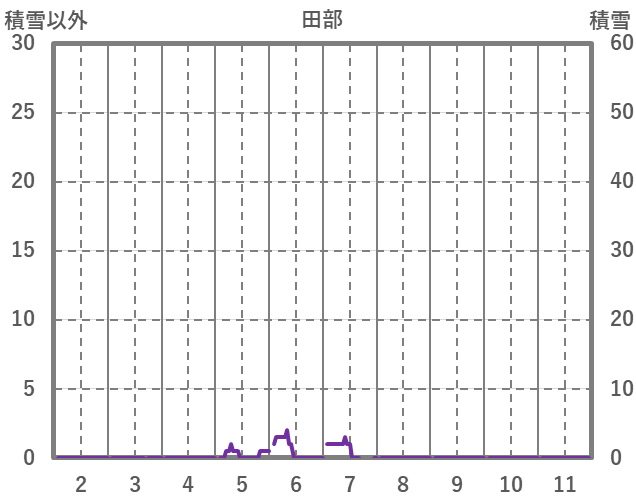 | 日 | 時 | 気温 | 降水 | 風向/風速 | 日照 | 積雪 | 降雪 |