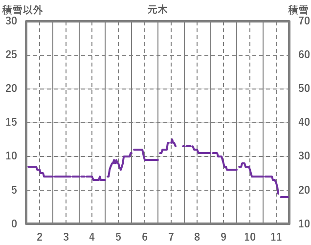 | 日 | 時 | 気温 | 降水 | 風向/風速 | 日照 | 積雪 | 降雪 |