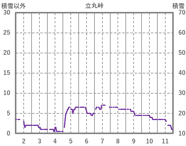 | 日 | 時 | 気温 | 降水 | 風向/風速 | 日照 | 積雪 | 降雪 |