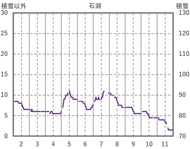 | 日 | 時 | 気温 | 降水 | 風向/風速 | 日照 | 積雪 | 降雪 |