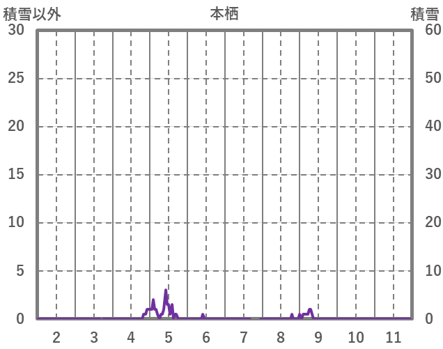 | 日 | 時 | 気温 | 降水 | 風向/風速 | 日照 | 積雪 | 降雪 |