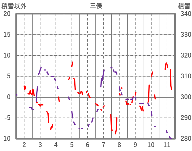 | 日 | 時 | 気温 | 降水 | 風向/風速 | 日照 | 積雪 | 降雪 |