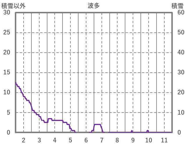| 日 | 時 | 気温 | 降水 | 風向/風速 | 日照 | 積雪 | 降雪 |