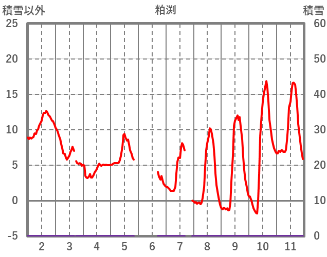 | 日 | 時 | 気温 | 降水 | 風向/風速 | 日照 | 積雪 | 降雪 |