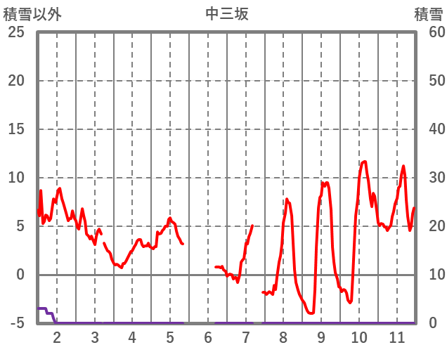 | 日 | 時 | 気温 | 降水 | 風向/風速 | 日照 | 積雪 | 降雪 |
