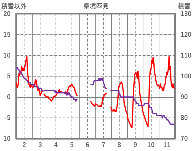 | 日 | 時 | 気温 | 降水 | 風向/風速 | 日照 | 積雪 | 降雪 |