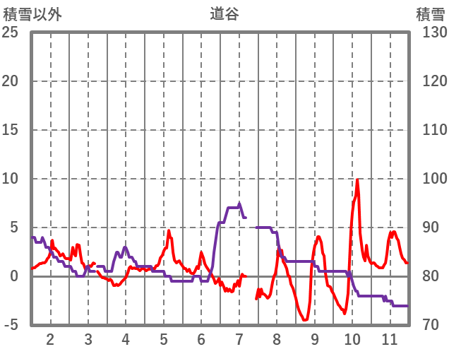 | 日 | 時 | 気温 | 降水 | 風向/風速 | 日照 | 積雪 | 降雪 |
