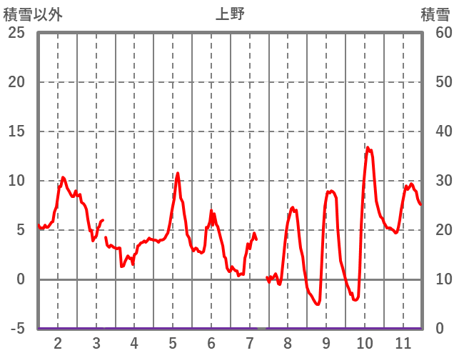 | 日 | 時 | 気温 | 降水 | 風向/風速 | 日照 | 積雪 | 降雪 |