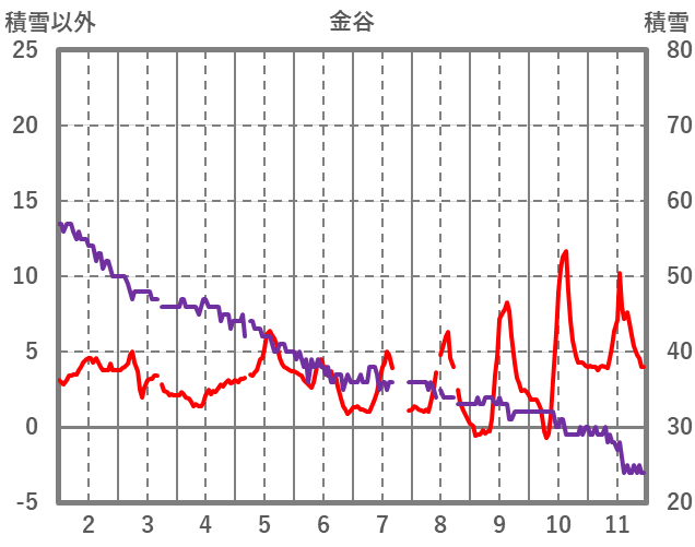 | 日 | 時 | 気温 | 降水 | 風向/風速 | 日照 | 積雪 | 降雪 |