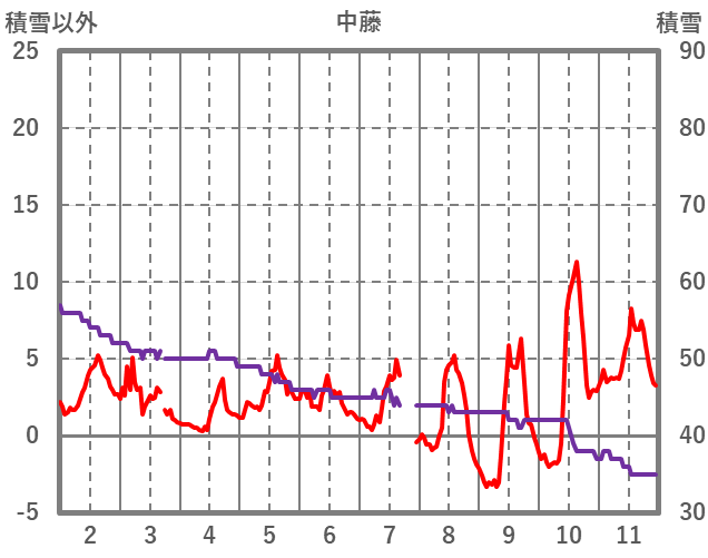| 日 | 時 | 気温 | 降水 | 風向/風速 | 日照 | 積雪 | 降雪 |