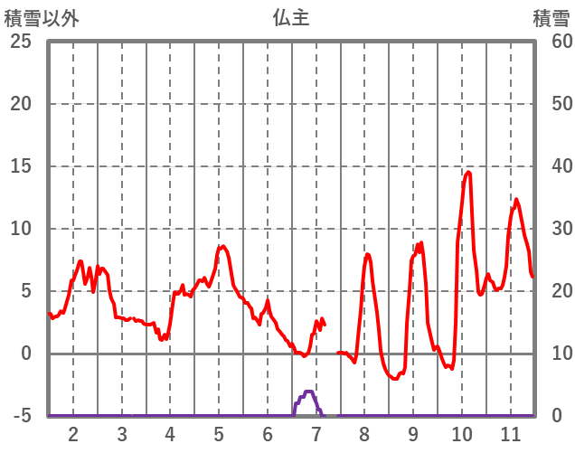 | 日 | 時 | 気温 | 降水 | 風向/風速 | 日照 | 積雪 | 降雪 |
