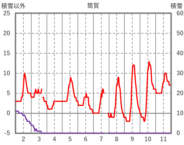 | 日 | 時 | 気温 | 降水 | 風向/風速 | 日照 | 積雪 | 降雪 |