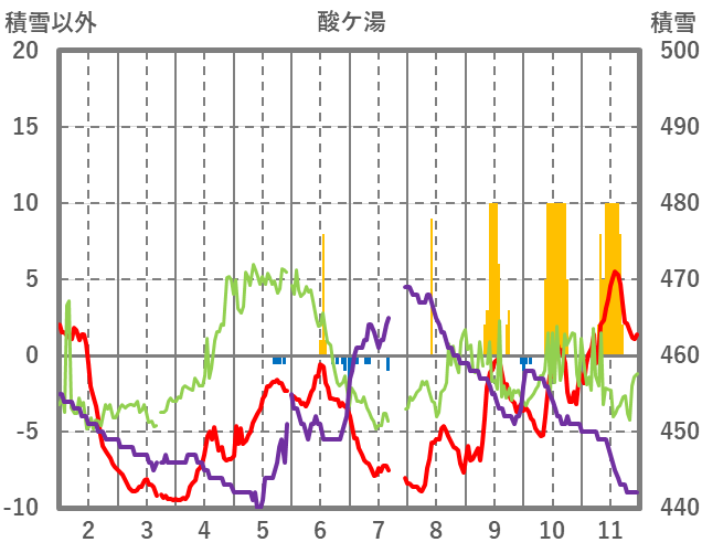 | 日 | 時 | 気温 | 降水 | 風向/風速 | 日照 | 積雪 | 降雪 |