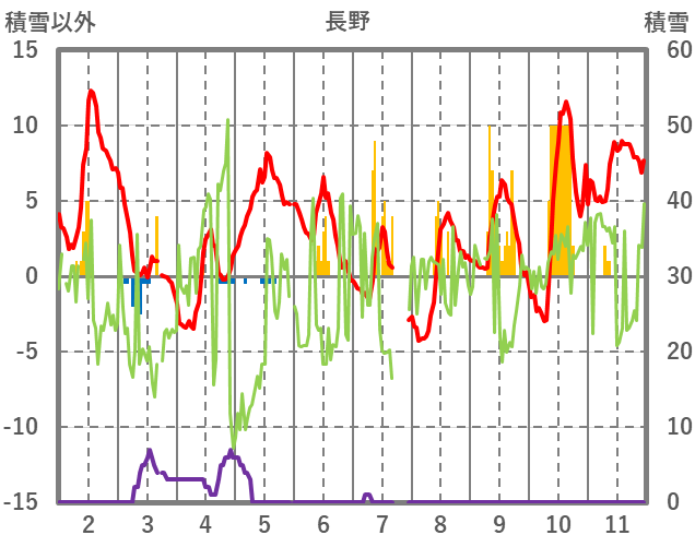 | 日 | 時 | 気温 | 降水 | 風向/風速 | 日照 | 積雪 | 降雪 |