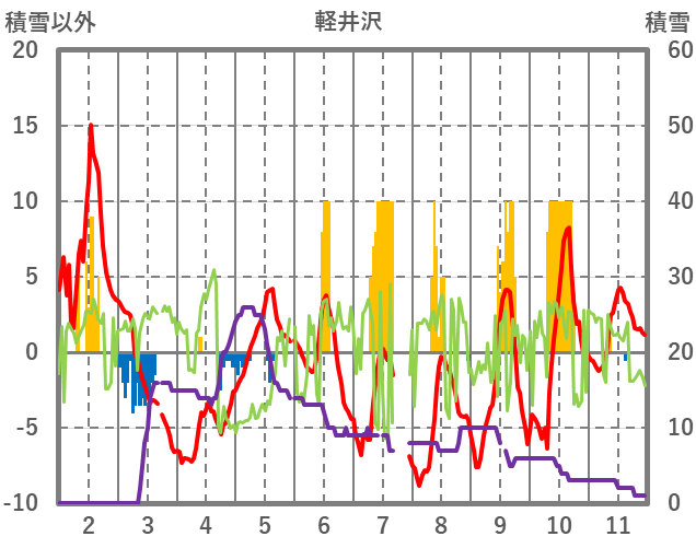 | 日 | 時 | 気温 | 降水 | 風向/風速 | 日照 | 積雪 | 降雪 |
