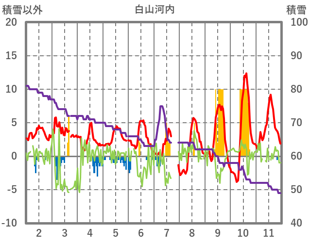 | 日 | 時 | 気温 | 降水 | 風向/風速 | 日照 | 積雪 | 降雪 |