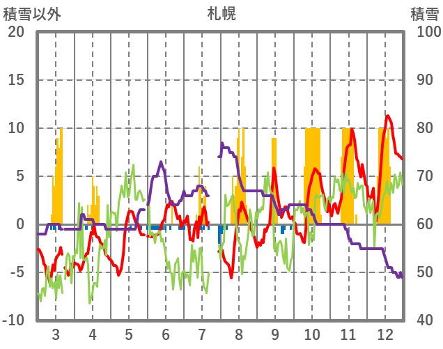 | 日 | 時 | 気温 | 降水 | 風向/風速 | 日照 | 積雪 | 降雪 |