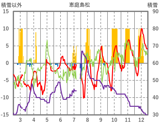 | 日 | 時 | 気温 | 降水 | 風向/風速 | 日照 | 積雪 | 降雪 |