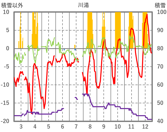 | 日 | 時 | 気温 | 降水 | 風向/風速 | 日照 | 積雪 | 降雪 |
