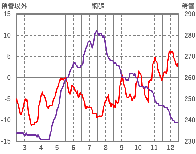 | 日 | 時 | 気温 | 降水 | 風向/風速 | 日照 | 積雪 | 降雪 |