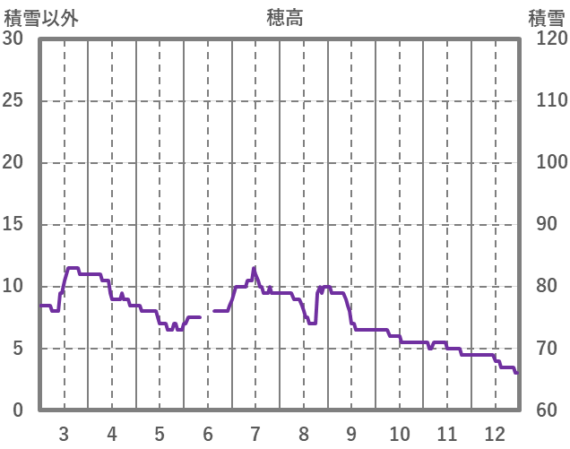 | 日 | 時 | 気温 | 降水 | 風向/風速 | 日照 | 積雪 | 降雪 |