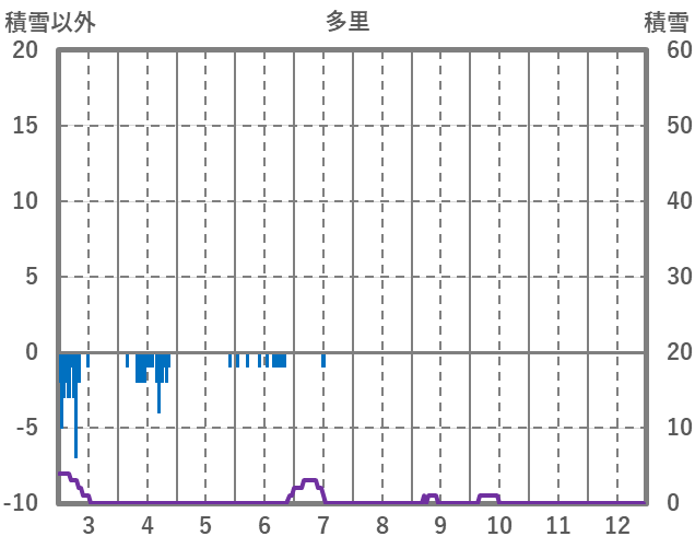 | 日 | 時 | 気温 | 降水 | 風向/風速 | 日照 | 積雪 | 降雪 |