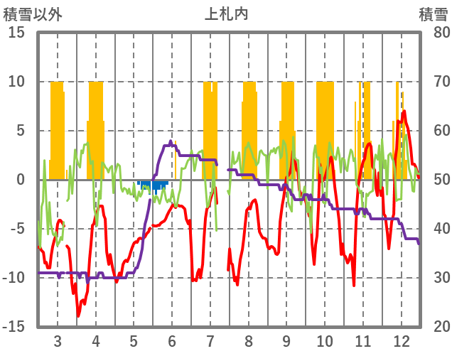 | 日 | 時 | 気温 | 降水 | 風向/風速 | 日照 | 積雪 | 降雪 |