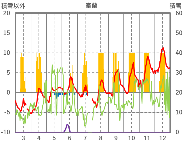 | 日 | 時 | 気温 | 降水 | 風向/風速 | 日照 | 積雪 | 降雪 |