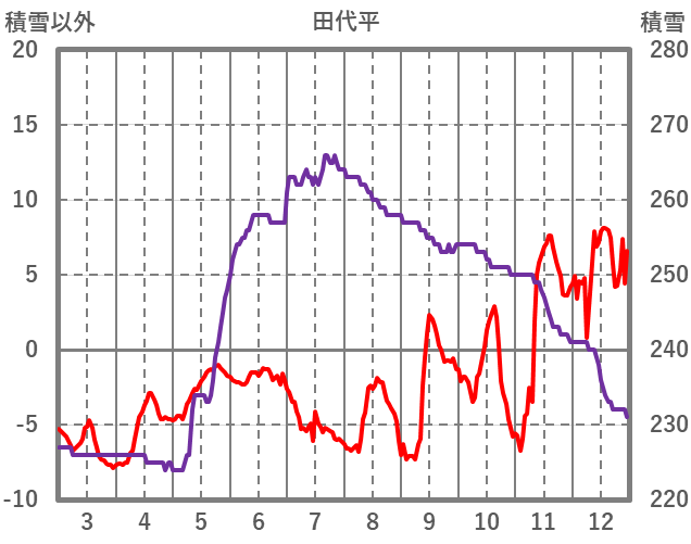 | 日 | 時 | 気温 | 降水 | 風向/風速 | 日照 | 積雪 | 降雪 |