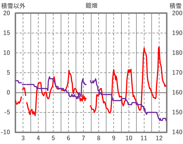 | 日 | 時 | 気温 | 降水 | 風向/風速 | 日照 | 積雪 | 降雪 |