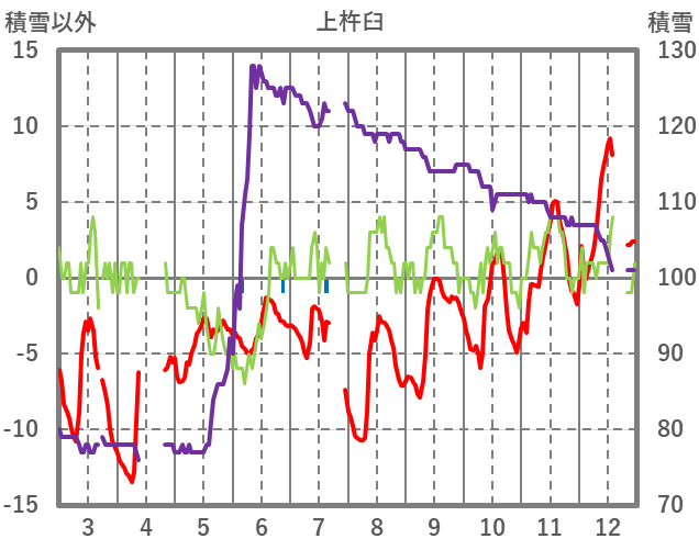 | 日 | 時 | 気温 | 降水 | 風向/風速 | 日照 | 積雪 | 降雪 |