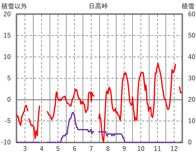 | 日 | 時 | 気温 | 降水 | 風向/風速 | 日照 | 積雪 | 降雪 |