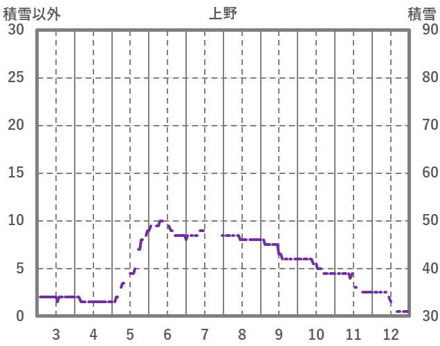 | 日 | 時 | 気温 | 降水 | 風向/風速 | 日照 | 積雪 | 降雪 |