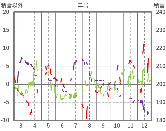 | 日 | 時 | 気温 | 降水 | 風向/風速 | 日照 | 積雪 | 降雪 |