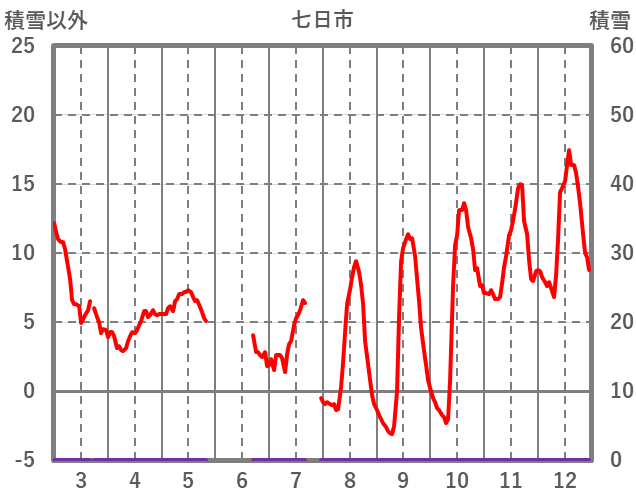 | 日 | 時 | 気温 | 降水 | 風向/風速 | 日照 | 積雪 | 降雪 |