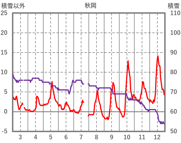 | 日 | 時 | 気温 | 降水 | 風向/風速 | 日照 | 積雪 | 降雪 |
